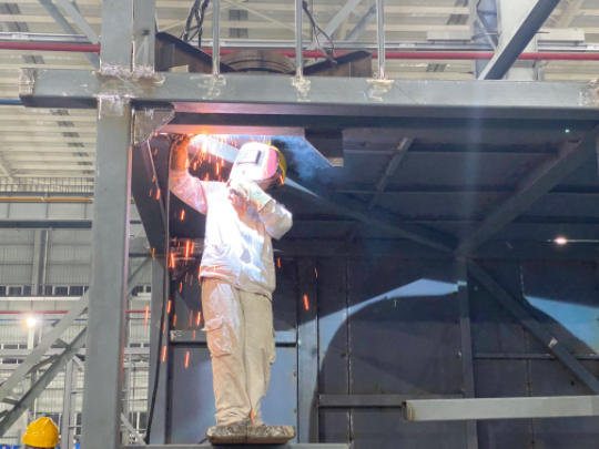 內蒙雅海、廊坊海旭、梧州金升等多個項目交付時間在即,項目生產已進入最緊張的階段。為確保如期完成交付,生產部爭分奪秒,80余名一線工人頂著高溫,有條不紊地進行焊接、鈑金、機加工等工作。在此搶抓工期的關鍵節點,生產一線以黨員帶頭引領全體員工連續奮戰多個日日夜夜,戮力同心、迎難而上,不論是焊工、鈑金工、機床工,還是工藝設計工,每天冒著烈日一線作業,他們用辛勤的汗水全力推進項目生產,用堅守跑出了項目高質量生產的“加速度”,奏響公司高質量發展的“最強音”。