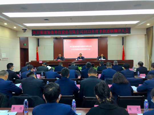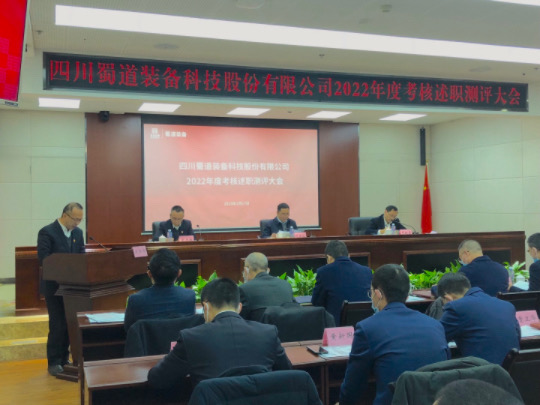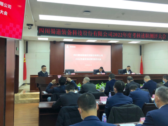 1月17日下午,四川蜀道裝備科技股份有限公司2022年度黨建考核暨領導班子和領導人員述職測評大會在成都召開。省國資委黨校執行副校長、集團公司黨校常務副校長、培訓發展中心主任、蜀道教育公司執行董事許正權一行出席,蜀道交通服務集團黨委書記、董事長兼蜀道裝備公司黨總支書記、董事長羅曉勇主持,蜀道裝備公司領導班子成員、外部董事、職工監事、中層管理人員代表、在蓉出資企業主要負責人以及公司部分職工代表共43人參加會議。