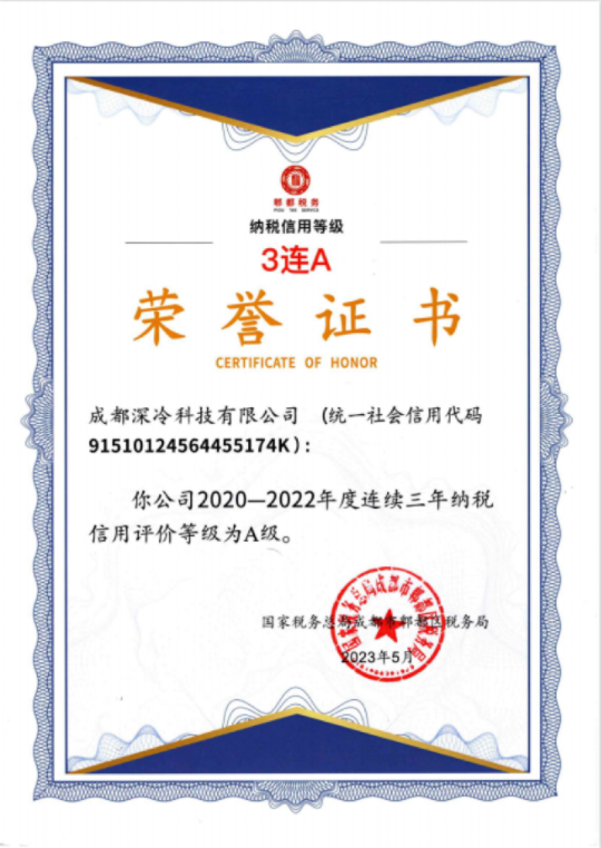 近日,蜀道裝備深冷科技公司獲得國家稅務總局成都市郫都區(qū)稅務局頒發(fā)的《納稅信用等級3連A榮譽證書》,公司首次獲得納稅信用等級“三連A”榮譽,體現(xiàn)了成都市郫都區(qū)稅務局對公司近3年信用管理以及稅務管理工作的充分肯定和認同,也彰顯了公司誠信為本、依法納稅的良好企業(yè)形象。