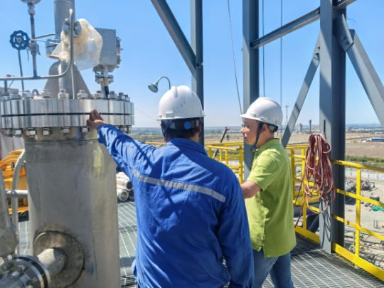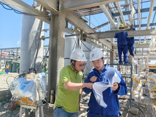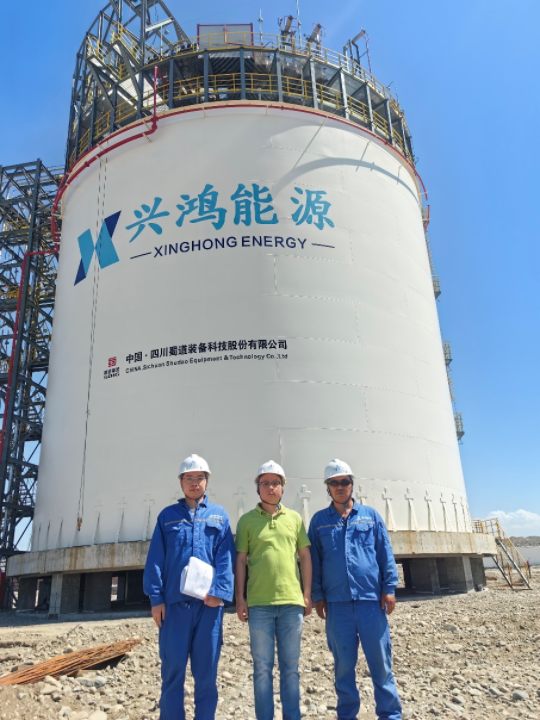 施工現場,陳毅向奮戰在一線的職工表示了親切的慰問和感謝,詳細了解了項目情況、項目進度等,并聽取了技術人員、施工經理對天然氣分離、深冷液化、LNG儲運等工藝、設備情況介紹。
