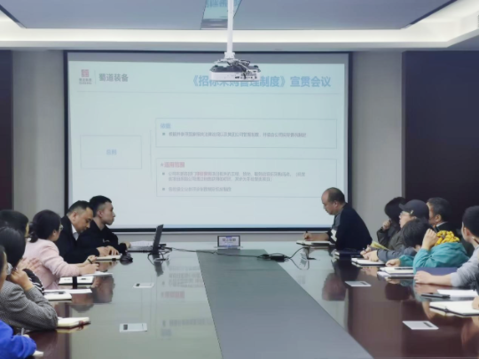 10月27日,蜀道裝備公司召開《招標采購管理制度》宣貫會議,各部門相關業務人員參加會議。