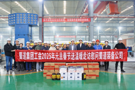 1月24日,蜀道集團工會副主席、蜀道鐵路運營集團黨委委員、副總經理劉應貴一行赴蜀道裝備公司開展蜀道集團2025年春節送溫暖走訪慰問活動,蜀道裝備公司黨委書記、董事長胡圣廈,蜀道裝備公司黨委副書記、工會主席陳毅參加慰問。