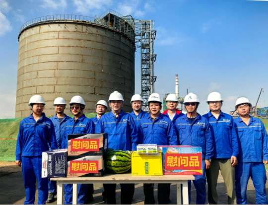 在項目現場,崔治祥為奮戰在高溫條件下的一線員工送去防暑降溫慰問品,并與大家親切交談,詳細詢問員工的工作強度、作息安排、飲食保障及身體狀況,反復叮囑大家高溫天氣作業時要將健康和安全放在首位,科學合理安排作業時間,做好自身防護。同時,要求項目現場負責人嚴格落實防暑降溫措施,配齊防暑藥品,改善作業環境,確保一線員工以充沛的精力投入工作。貼心的關懷和“清涼”,驅散了現場的酷熱,極大地鼓舞了一線員工的士氣和干勁。