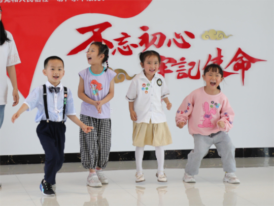 為推進學習貫徹習近平新時代中國特色社會主義思想主題教育走深走實走心,活動中工作人員從“黨旗為什么這樣紅、鐮刀和錘頭分別代表誰、實現中國式現代化我們怎么辦”等方面,采用孩子們愛聽能懂的“童言童語”講好黨史故事,在孩子們幼小的心靈播撒下愛黨愛國的“種子”。