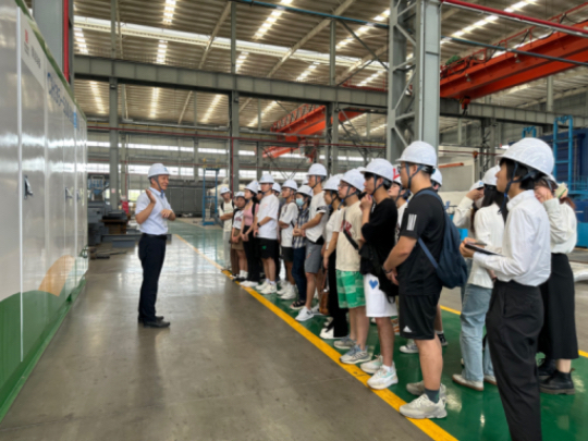 活動中,四川省勞模、成都工匠、公司生產部部長張建岳帶隊參觀公司生產車間、產業展廳等,詳細介紹公司作為國家級“專精特新”小巨人企業在技能培訓、技術創新、產業布局、改革轉型等方面的情況,講述分享個人成長經歷、工作經驗及技術攻關等,一一解答公司青年團員及郫都區大學生們對升學求職、職業發展、技能提升等方面的困惑。“成都工匠”“蜀道工匠”獲得者、公司生產部焊接組組長吳小江用幽默樸實的話語,讓大家重新認識新時代產業工人的風采;公司技術研發部謝宛容以新入職員工的學習工作經歷和感受作交流分享。