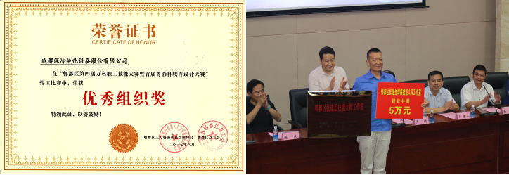2017年9月7日,由郫都區(qū)人社局聯(lián)合區(qū)總工會(huì)舉辦的“郫都區(qū)第四屆萬名職工技能大賽暨首屆菁蓉杯軟件設(shè)計(jì)大賽頒獎(jiǎng)儀式”在成都工業(yè)學(xué)院隆重舉行。我司焊工組二等獎(jiǎng)獲獎(jiǎng)?wù)邊切〗⑻m林,數(shù)控銑工組二等獎(jiǎng)獲獎(jiǎng)?wù)咄踯姟⑷泉?jiǎng)獲獎(jiǎng)?wù)吆挝亩Y參加了頒獎(jiǎng)儀式,我司榮獲“優(yōu)秀組織獎(jiǎng)”。