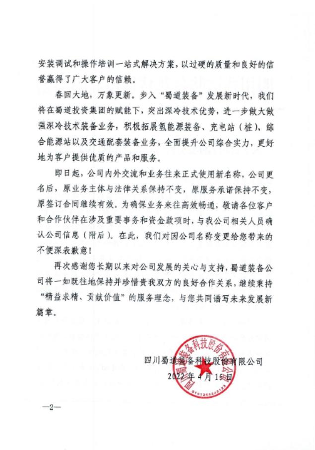 公司名稱:四川蜀道裝備科技股份有限公司