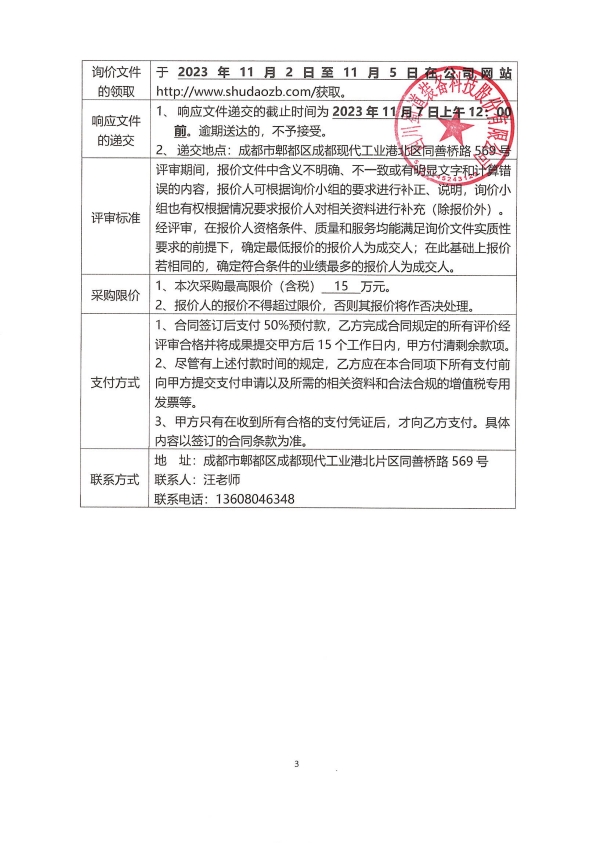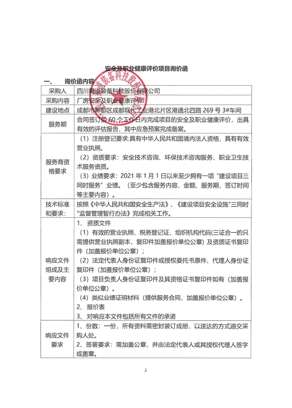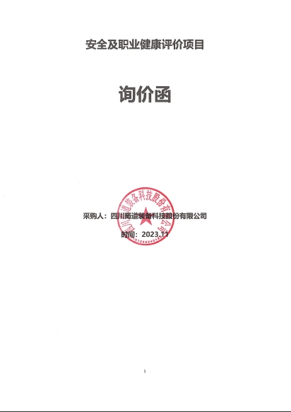 四川蜀道裝備科技股份有限公司安全及職業健康評價詢價函