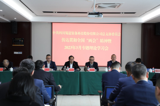 2023年3月29日下午,中共四川蜀道裝備科技股份有限公司總支部委員會(huì)召開傳達(dá)貫徹全國(guó)“兩會(huì)”精神暨2023年3月專題理論學(xué)習(xí)會(huì)。公司黨總支書記、董事長(zhǎng)羅曉勇主持并宣講全國(guó)“兩會(huì)”精神,公司黨總支副書記、董事、總經(jīng)理謝樂(lè)敏等4位同志作交流發(fā)言。同時(shí)還圍繞國(guó)企領(lǐng)導(dǎo)管理人員從業(yè)規(guī)范開展了學(xué)習(xí)培訓(xùn),公司黨總支委員及其他領(lǐng)導(dǎo)班子成員、總助級(jí)、中層管理人員(含專業(yè)技術(shù)副總工、業(yè)務(wù)總監(jiān)),各出資企業(yè)黨支部委員及其他領(lǐng)導(dǎo)班子成員,公司本部第一、第二黨支部及團(tuán)支部委員共61人參加。